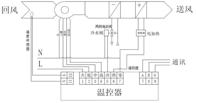 電加熱雙管系統(tǒng)由溫控器、風(fēng)機(jī)盤(pán)管、電動(dòng)閥、電加熱器和接觸器等組成。