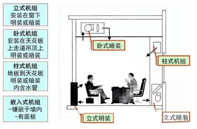 3。各種類型風(fēng)機(jī)盤(pán)管裝置的安裝位置