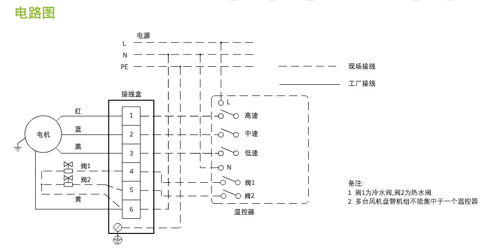 風(fēng)機盤管簡單控制:使用三速開關(guān)直接手動控制風(fēng)機的三速轉(zhuǎn)換與啟停。