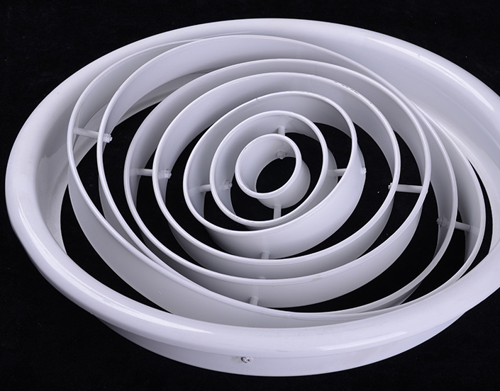 結構外觀為圓形,內心有多個圓環(huán)組成,能可上下45度調整風口阻力小,適用于劇院,體育館及樓層較高的場所,可附加風量調調節(jié)閥。產(chǎn)品外形美觀外。表面采用靜電噴塑,烤漆或者陽極處理。選用優(yōu)質加厚鋁合金材料,更加耐用