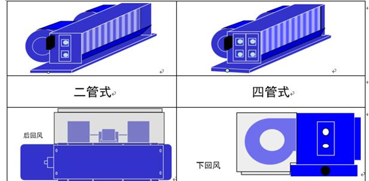 左右判斷模式:面對(duì)風(fēng)機(jī)盤管出風(fēng)口,冷熱介質(zhì)進(jìn)、出口管留在左側(cè),反之亦然。