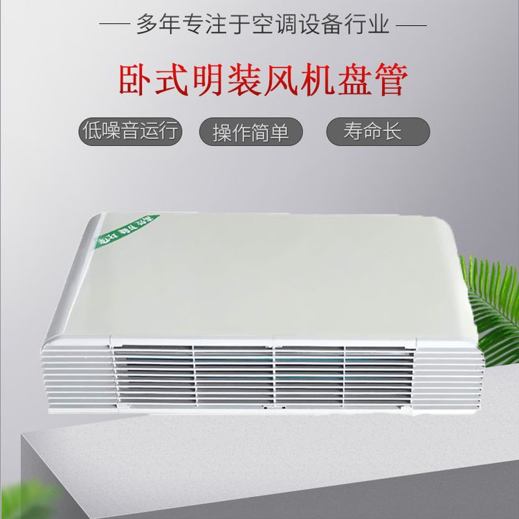 臥式明裝風(fēng)機盤管機組主要由風(fēng)機、熱交換器(盤管)、凝水盤、殼體及控制器組成,它適用于集中式空調(diào)系統(tǒng)。設(shè)計先進(jìn)、品種齊全、性能優(yōu)越,用途廣泛,通常用于要求噪聲小,溫度調(diào)節(jié)靈活的各種賓館、公寓、飯店、醫(yī)院、商業(yè)大樓等。