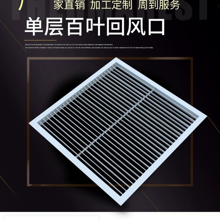 單層可調(diào)百葉風(fēng)口常用于管道中的吸、送風(fēng)用,同時(shí)可根據(jù)實(shí)際情況配上人字閘(多葉對(duì)開調(diào)節(jié)閥),用以控制風(fēng)量或安裝鋁合金過濾器,進(jìn)行配套使用。葉片可分為橫放和豎放兩種,可靈活的左右或者上下轉(zhuǎn)動(dòng),以控制氣流方向。
